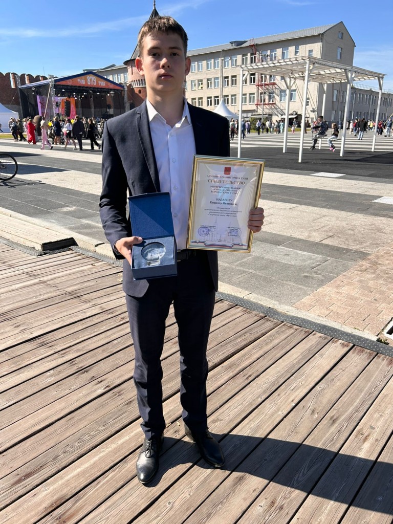 Олегу Вячеславовичу вручили медаль администрации города Тулы "За вклад в развитие спорта , а Кириллу - почётный знак "Юное дарование города- героя Тулы".